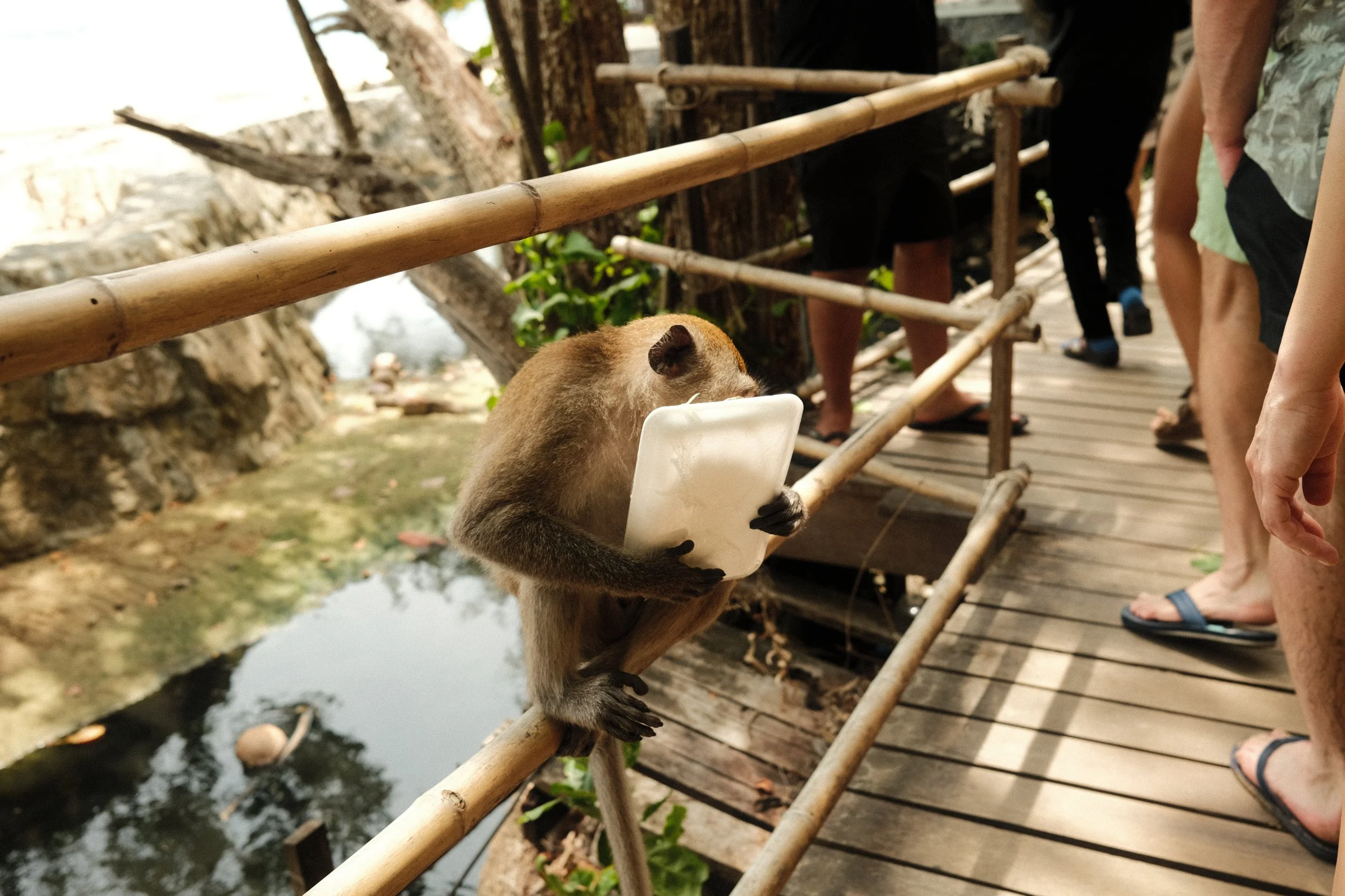The next day, we went to Monkey Beach. We had the brilliant idea of getting some fruits for when we were relaxing at the beach. As the name implies, obviously, the trail to this beach is filled with monkeys trying to steal your food. Our lovely fruits were immediately snatched by a horde of monkeys, much to their delight. Although we lost our fruits, we made it to the beach, and it was amazing! We also had a great sunset there.