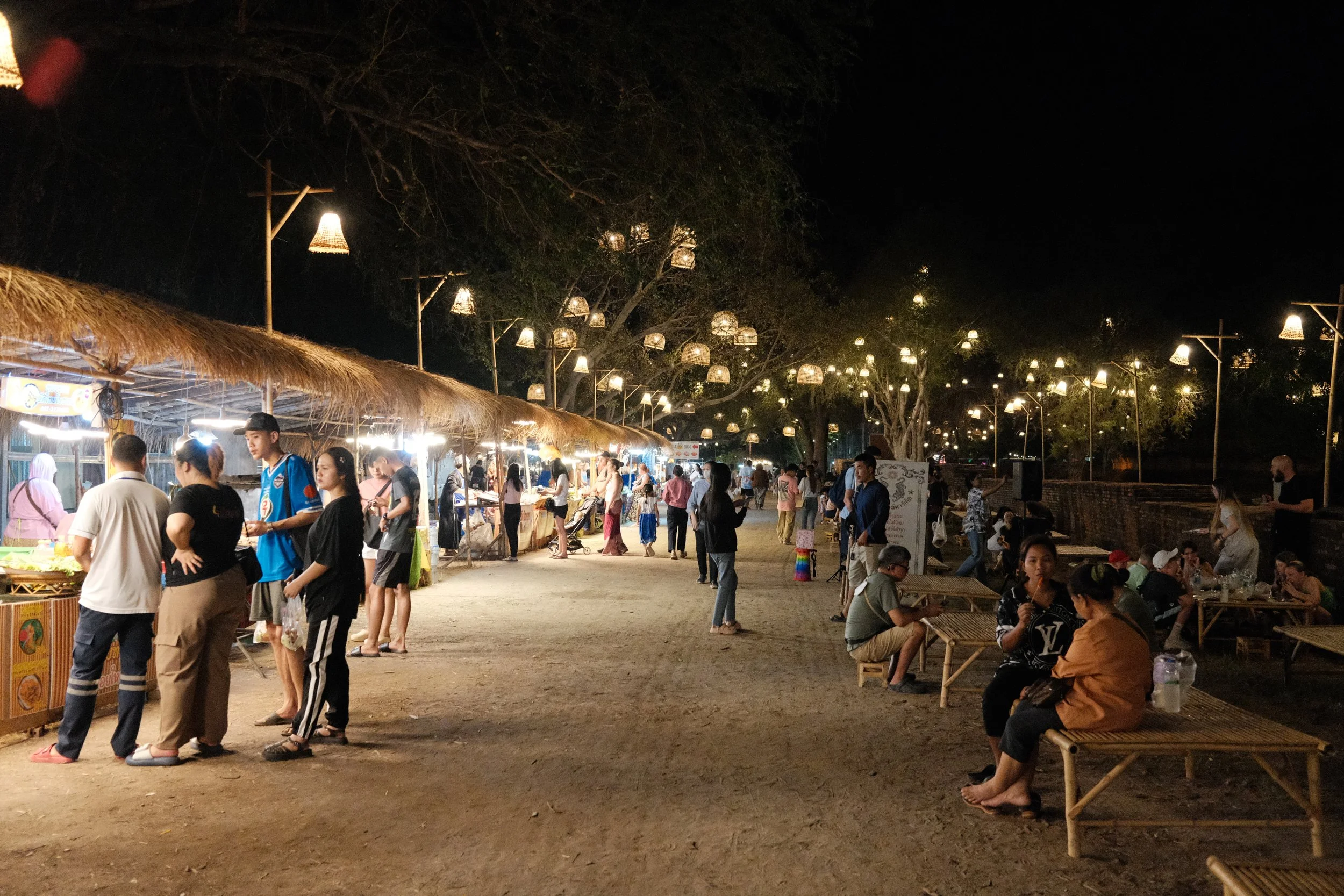 Ayutthaya, around 90 km north of Bangkok, is a town and former capital of the Siam empire. It is the site of immense temples and other structures that are important both historically and architecturally. It is usually done as part of an organized day trip, but we wanted to spend a night there, which proved to be one of the highlights of the trip. When we arrived, we realized our cozy bungalows were right next to one of the historical temples, which conveniently had a night market right next to it. It was incredibly to us to be eating street food and hearing a high-school band play next to these ancient temples. We also asked the guards if it was alright to enter the temple sites, and they just waves us right through. A picture could never do justice, but here’s my best shot.